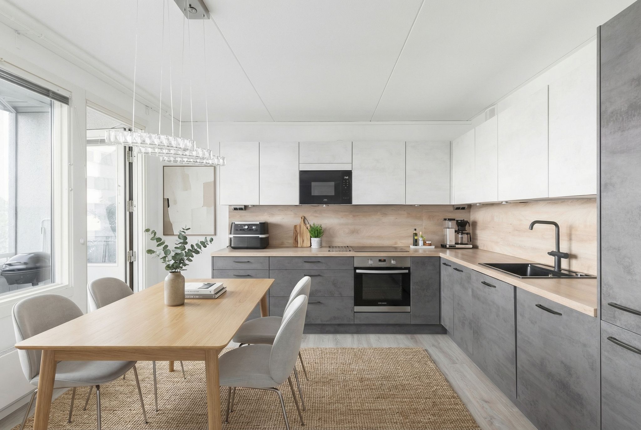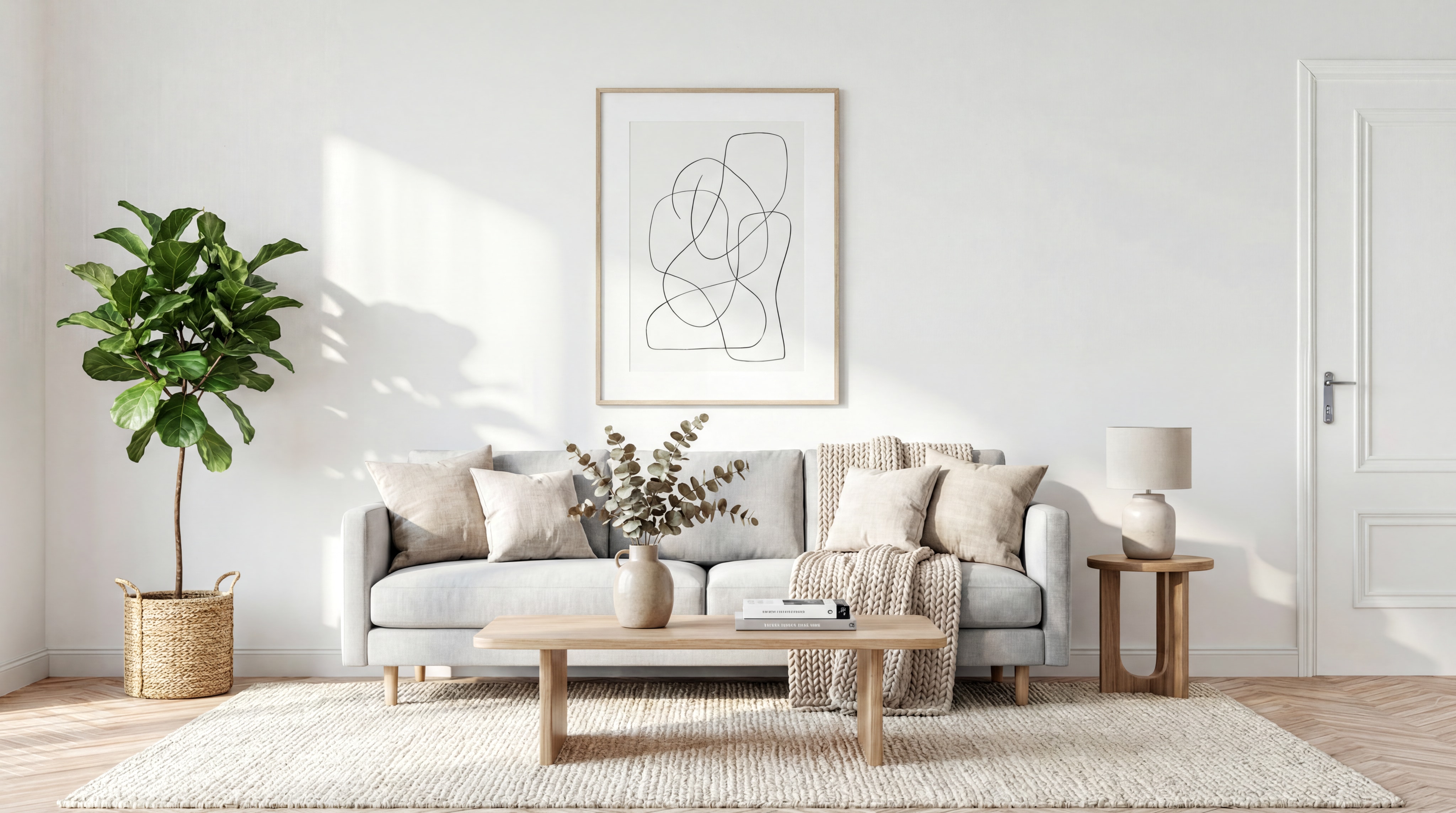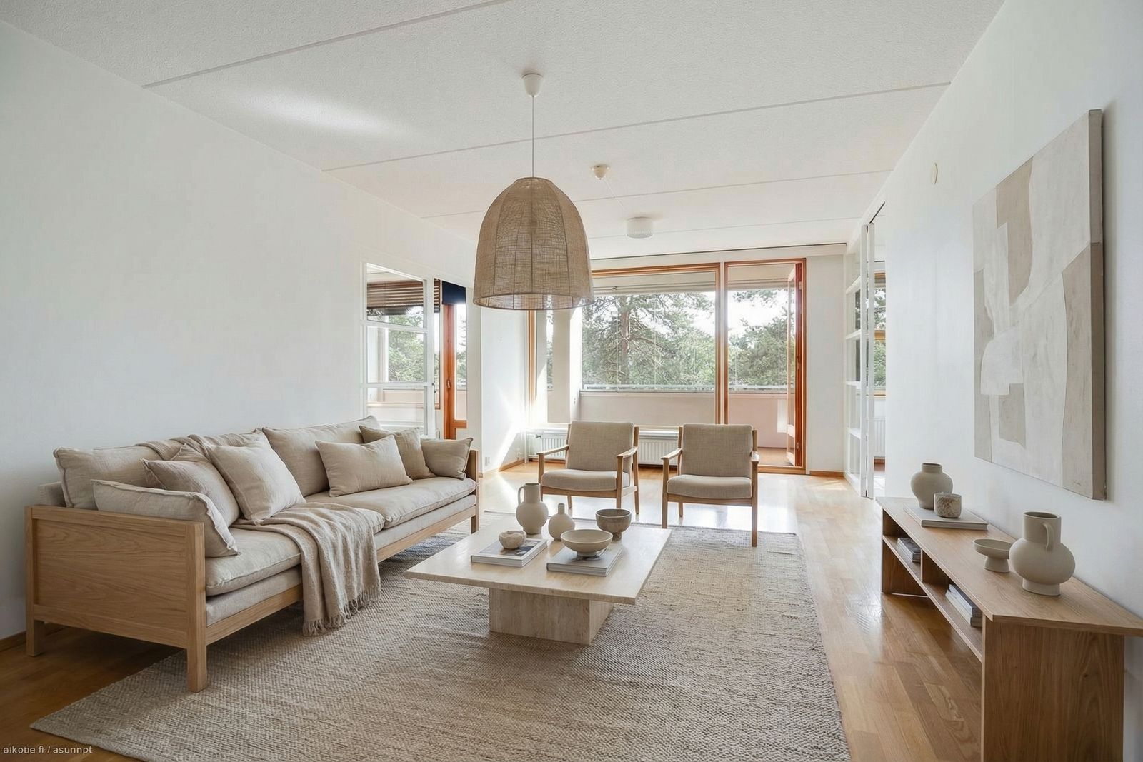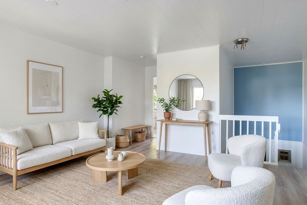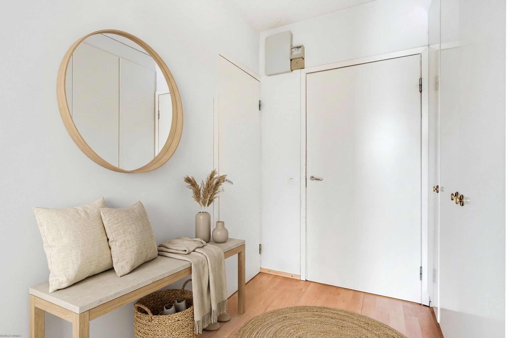 Skandinaavista estetiikkaa, vaaleita sävyjä ja kuratoituja yksityiskohtia.